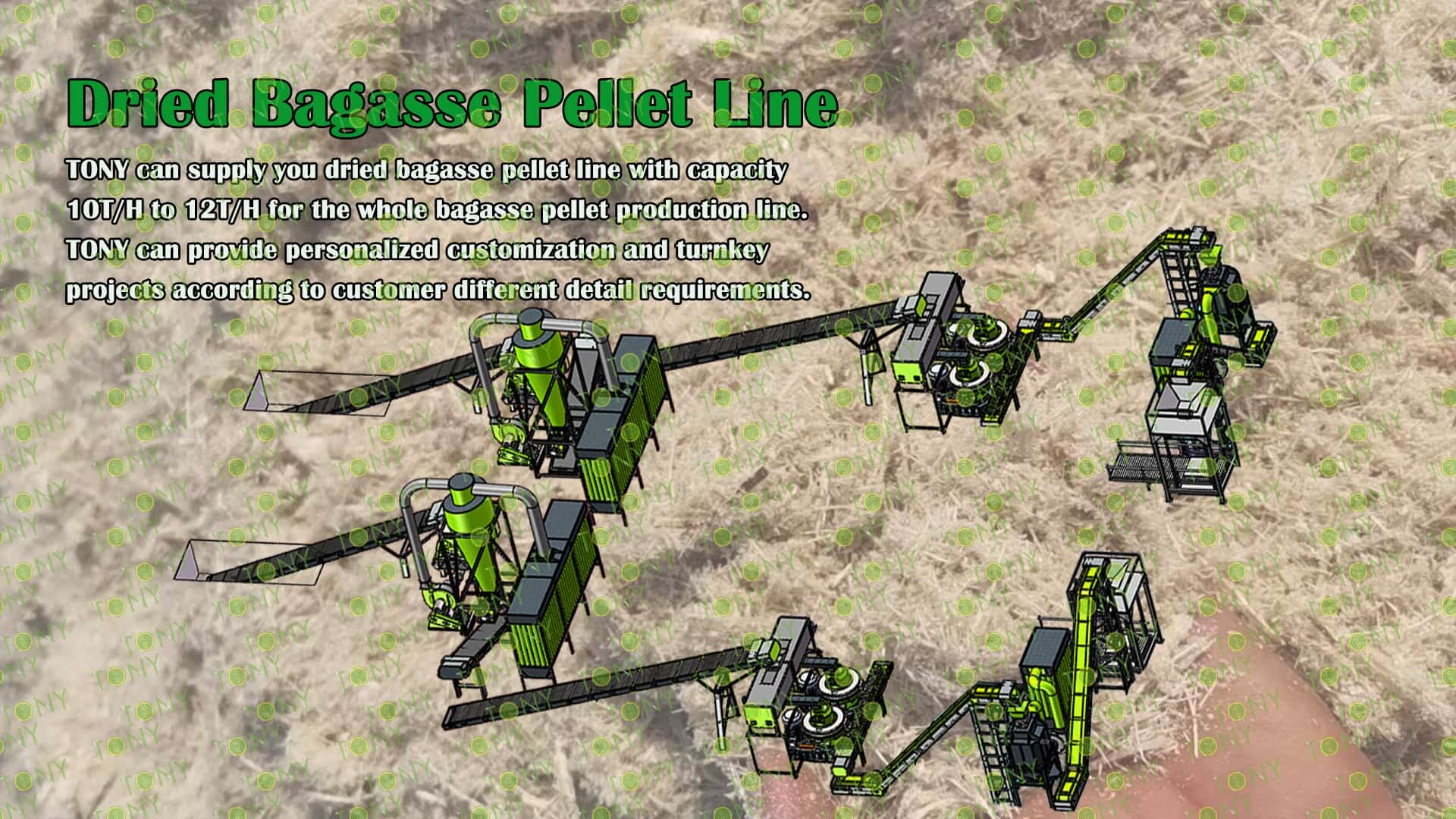 3.TONY Brand 10-12Ton /Hour Dried Bagasse Pellet Line Project Process