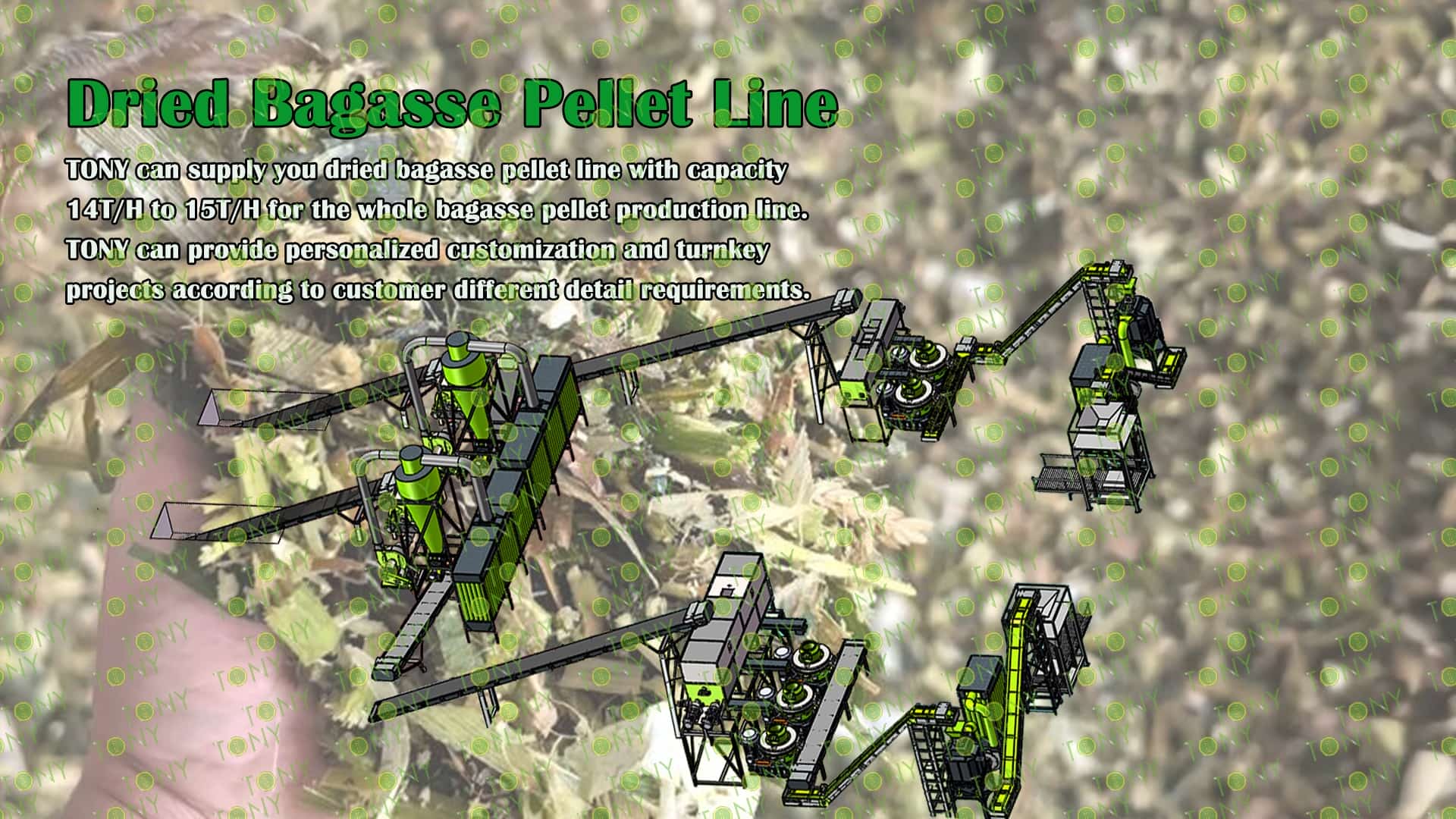 3.TONY Brand14-15Ton /Hour Dried Bagasse Pellet Line Project Process