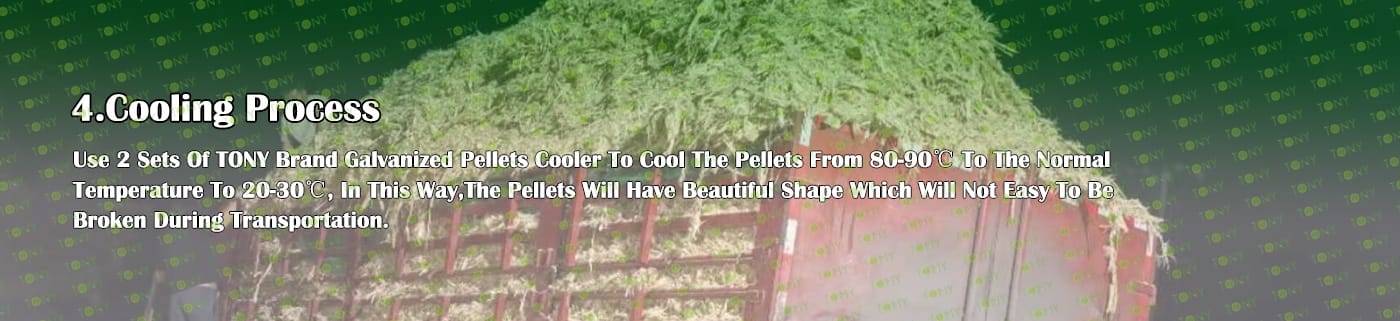 6. Main Equipment: Effective Hammer Mill-TFD85*250-250KW,TONY Large Hydraulic Storage Silo,TONY Pellet Machine- TYJ760-Ⅲ-160KW, Galvanized Pellets Cooler, Ton Packing Machine and Belt Conveyors