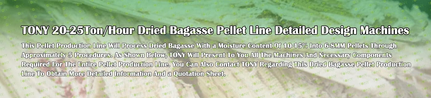 TONY Brand 20-25Ton/Hour Dried Bagasse Pellet Manufacturing Plant can take dried bagasse as the main raw material. After pretreatment and processing, it is solidified into high - density Bagasse pellet fuel. This fuel is an ideal substitute for coal and oil and plays a role in energy conservation and emission reduction. At present, it has been widely used in regions rich in bagasse resources.