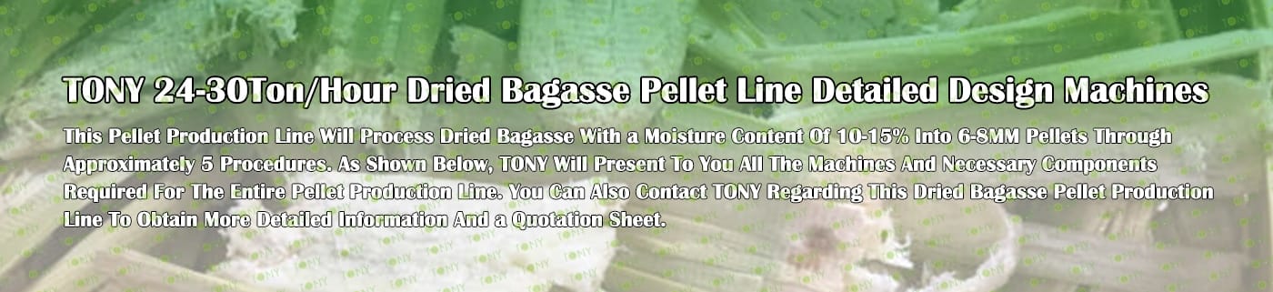 TONY Brand 24-30Ton/Hour Dried Bagasse Pellet Manufacturing Plant can take dried bagasse as the main raw material. After pretreatment and processing, it is solidified into high - density Bagasse pellet fuel. This fuel is an ideal substitute for coal and oil and plays a role in energy conservation and emission reduction. At present, it has been widely used in regions rich in bagasse resources.