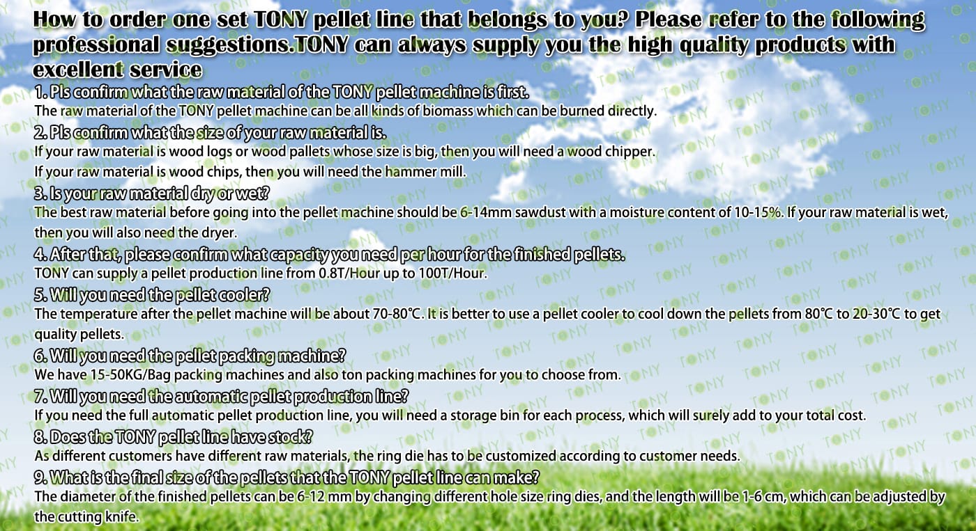 | Next, TONY Will Introduce To You All The Necessary Machinery That Will Be Used For The Whole Pellet Production Line. Some Machines Can Be Custom - Made By Customers According To Different Customers' Detailed Demands. Contact TONY For More Details, Including Quotation And Layout. | ||