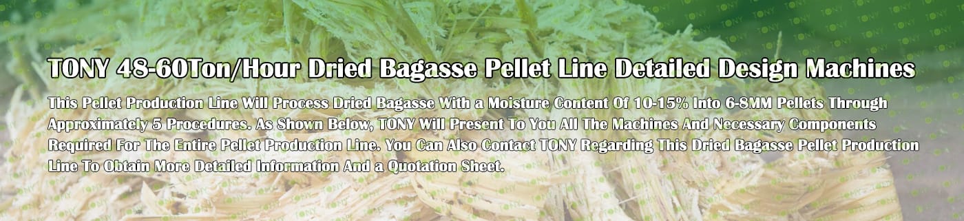 TONY Brand 48-60Ton/Hour Dried Bagasse Pellet Manufacturing Plant can take dried bagasse as the main raw material. After pretreatment and processing, it is solidified into high - density Bagasse pellet fuel. This fuel is an ideal substitute for coal and oil and plays a role in energy conservation and emission reduction. At present, it has been widely used in regions rich in bagasse resources.