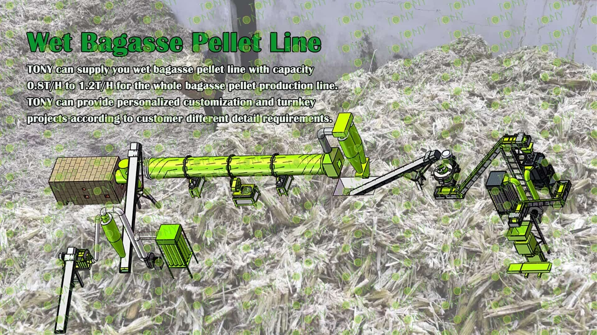 3.TONY Brand 0.8-1.2 Ton /Hour Wet Bagasse Pellet Line Project Process