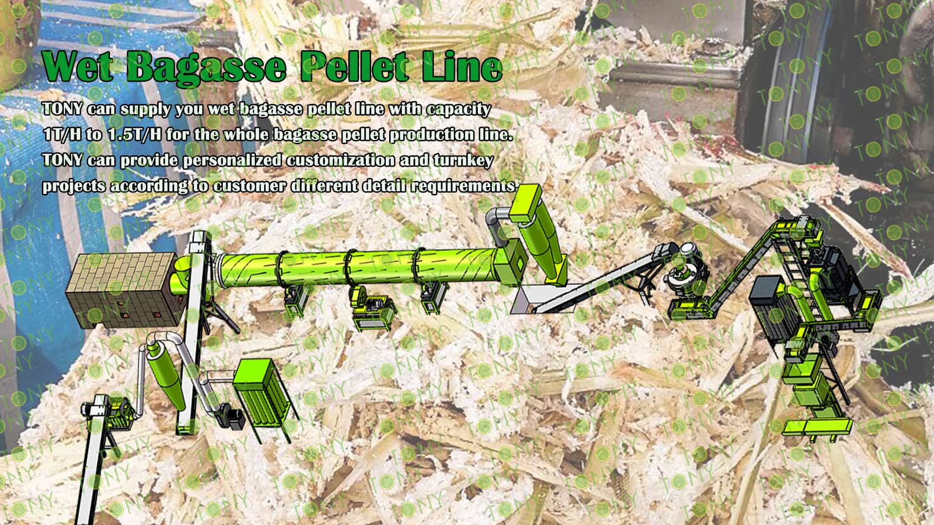 3.TONY Brand 1-1.5 Ton /Hour Wet Bagasse Pellet Line Project Process