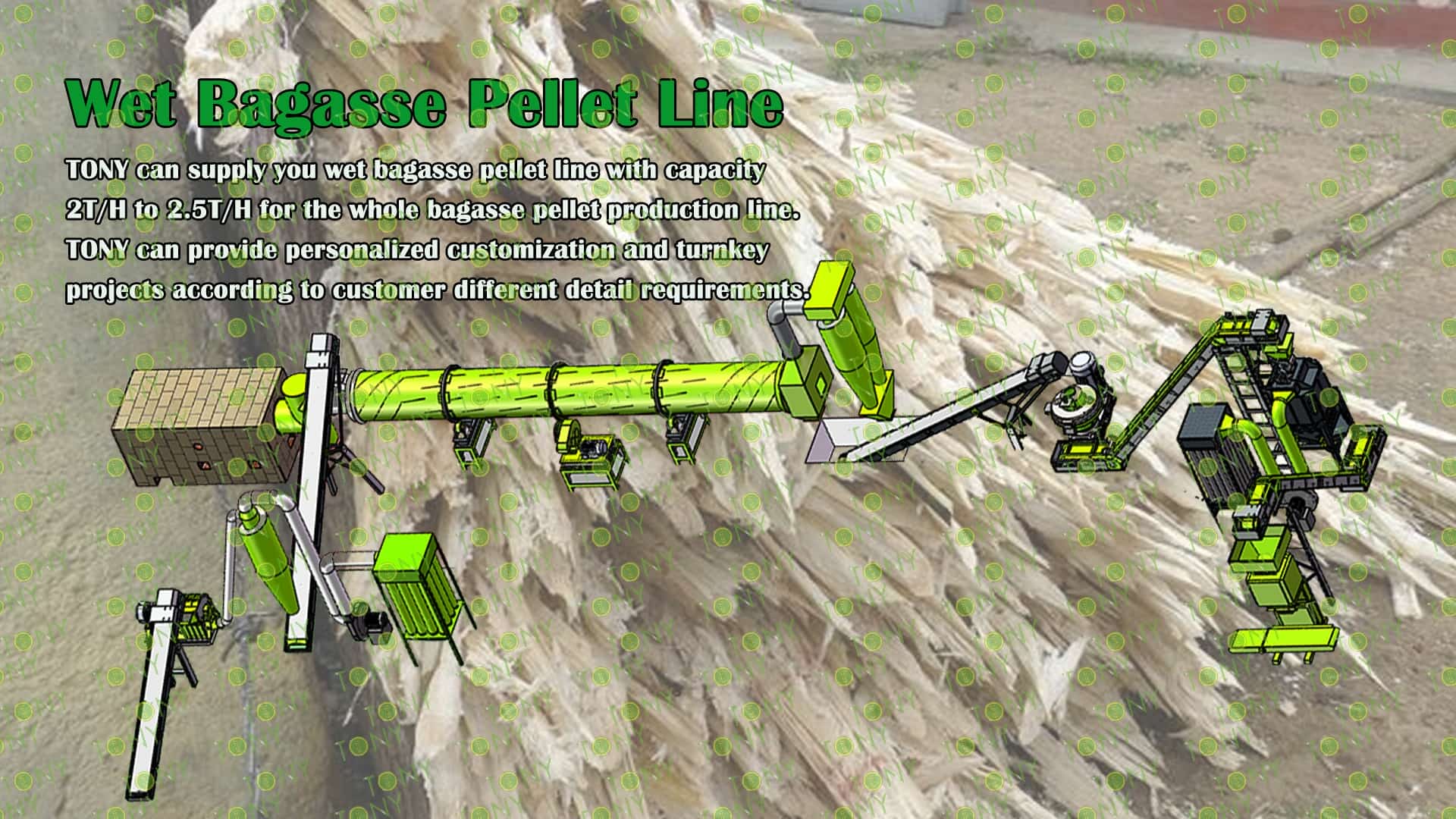 3.TONY Brand 2-2.5 Ton /Hour Wet Bagasse Pellet Line Project Process