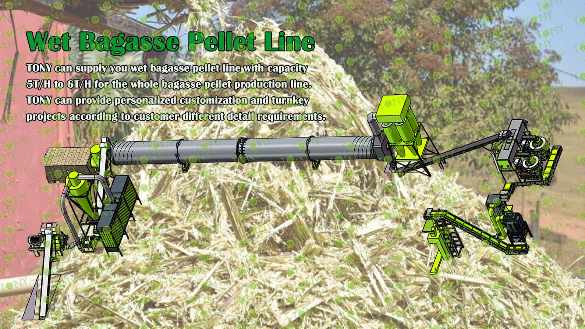 3.TONY Brand 5-6Ton /Hour Wet Bagasse Pellet Line Project Process