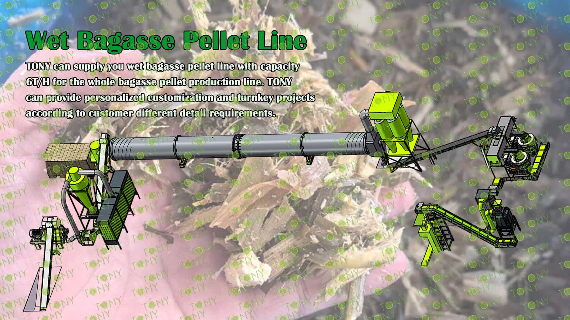 3.TONY Brand 6Ton /Hour Wet Bagasse Pellet Line Project Process