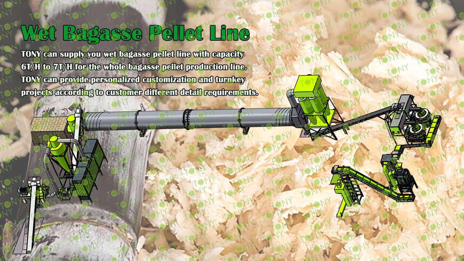 3.TONY Brand 6-7Ton /Hour Wet Bagasse Pellet Line Project Process