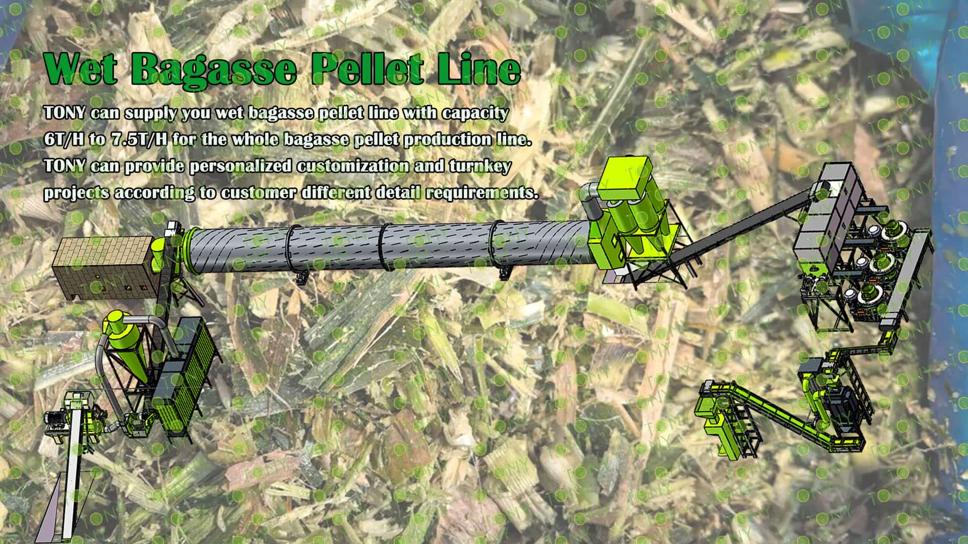 3.TONY Brand 6-7.5Ton /Hour Wet Bagasse Pellet Line Project Process
