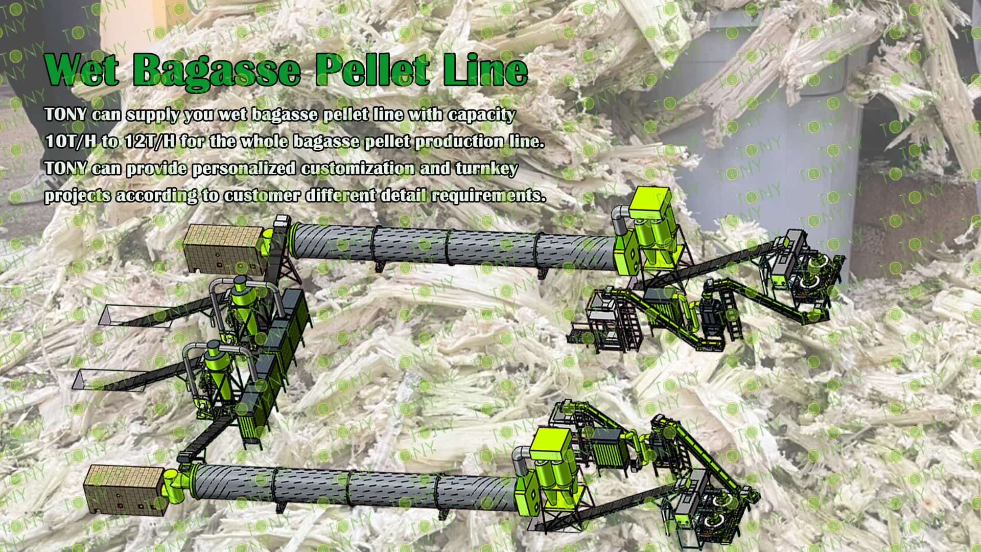 3.TONY Brand 10-12 Ton /Hour Wet Bagasse Pellet Line Project Process