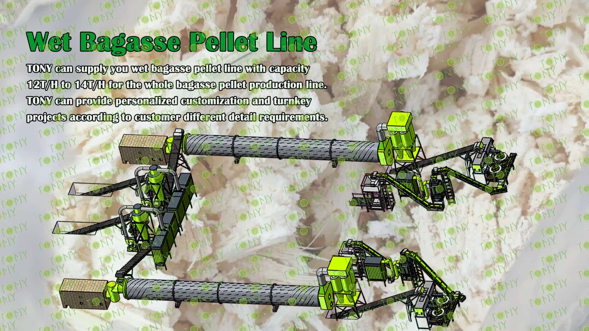 3.TONY Brand 12-14 Ton /Hour Wet Bagasse Pellet Line Project Process