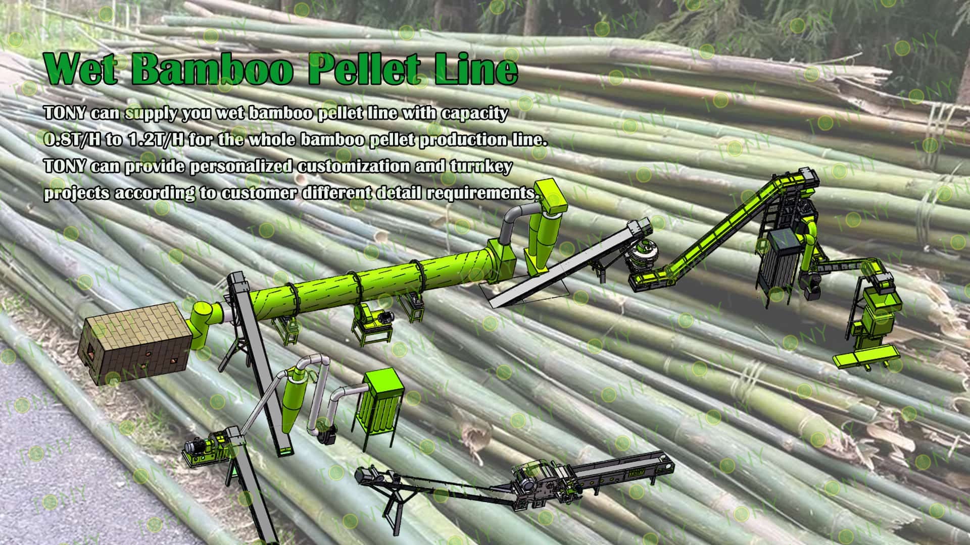 3.TONY Brand 0.8-1.2 Ton /Hour Wet Bamboo Pellet Line Project Process