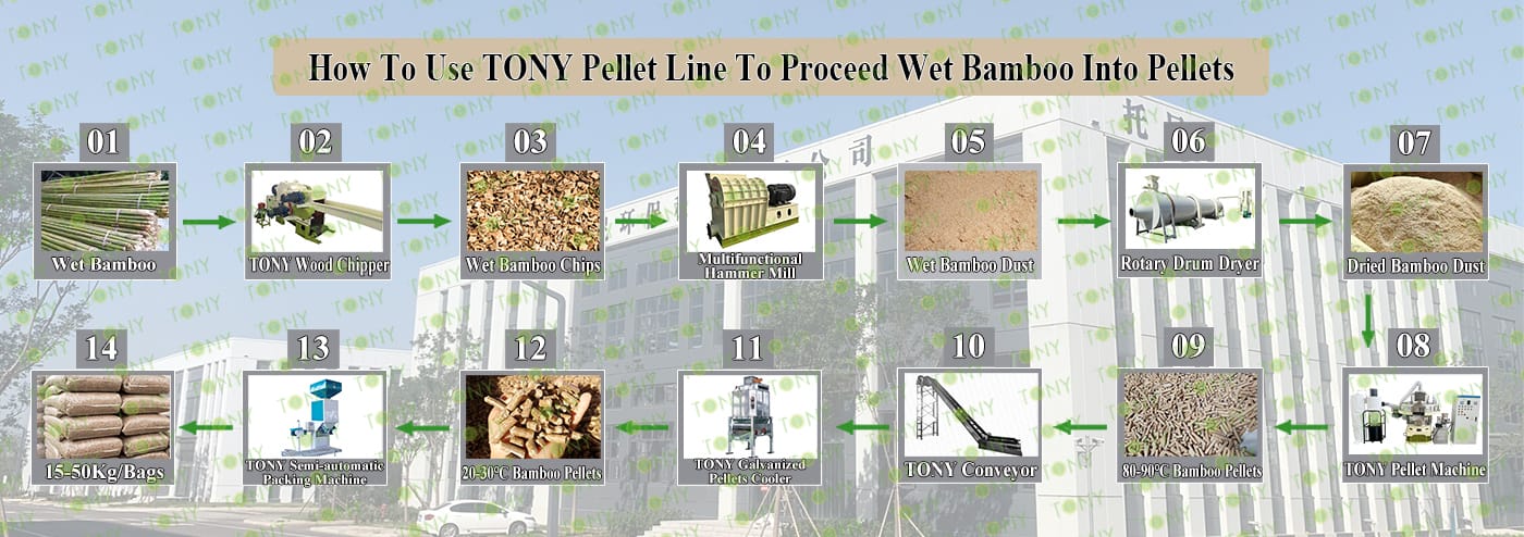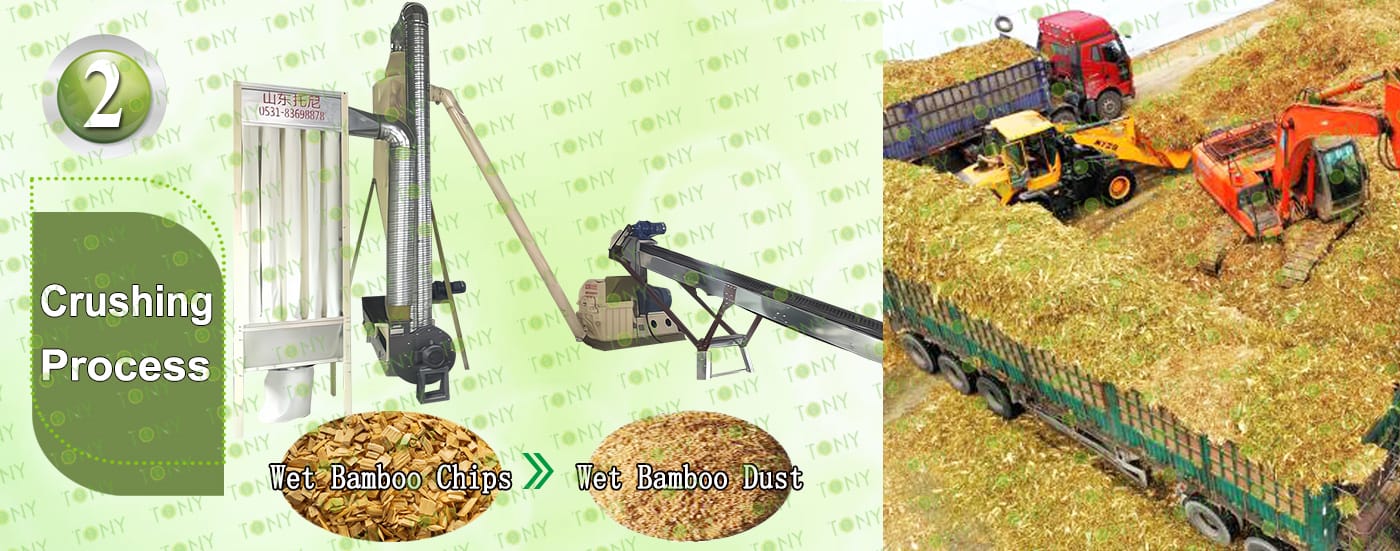 3.TONY Brand 1-1.5Ton /Hour Wet Bamboo Pellet Line Project Process