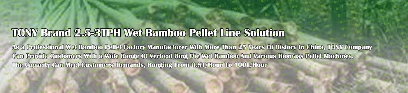 TONY Brand 2.5-3Ton/Hour Wet Bamboo Pellet Manufacturing Plant can take wet bamboo as the main raw material. After pretreatment and processing, it is solidified into high - density bamboo pellet fuel. This fuel is an ideal substitute for coal and oil and plays a role in energy conservation and emission reduction. At present, it has been widely used in regions rich in bamboo resources.