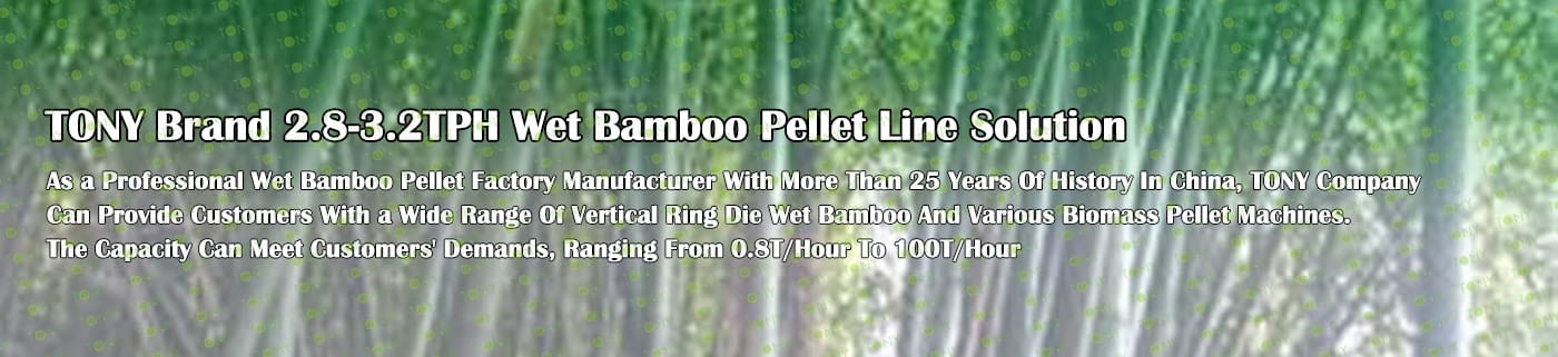 TONY Brand 2.8-3.2Ton/Hour Wet Bamboo Pellet Manufacturing Plant can take wet bamboo as the main raw material. After pretreatment and processing, it is solidified into high - density bamboo pellet fuel. This fuel is an ideal substitute for coal and oil and plays a role in energy conservation and emission reduction. At present, it has been widely used in regions rich in bamboo resources.