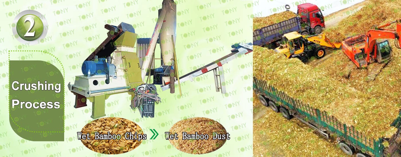 3.TONY Brand 3Ton /Hour Wet Bamboo Pellet Line Project Process