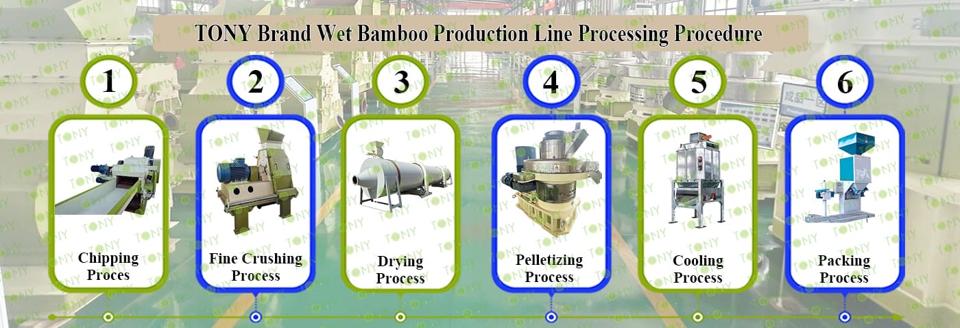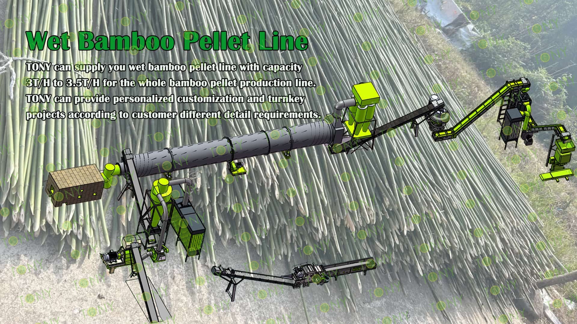 3.TONY Brand 3-3.5Ton /Hour Wet Bamboo Pellet Line Project Process