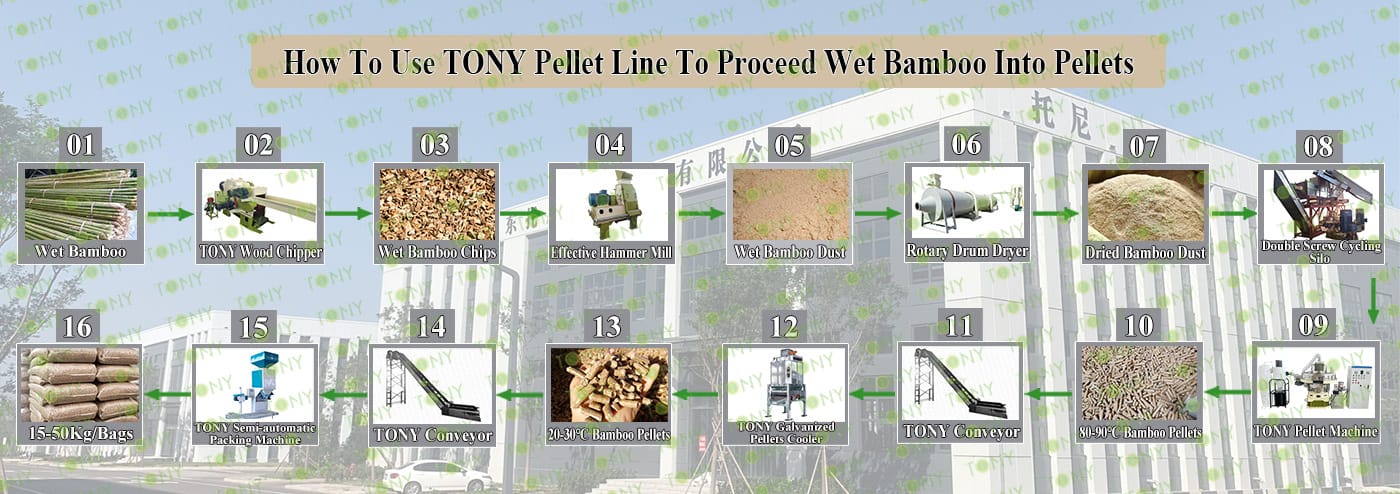 3.TONY Brand 3-4Ton /Hour Wet Bamboo Pellet Line Project Process