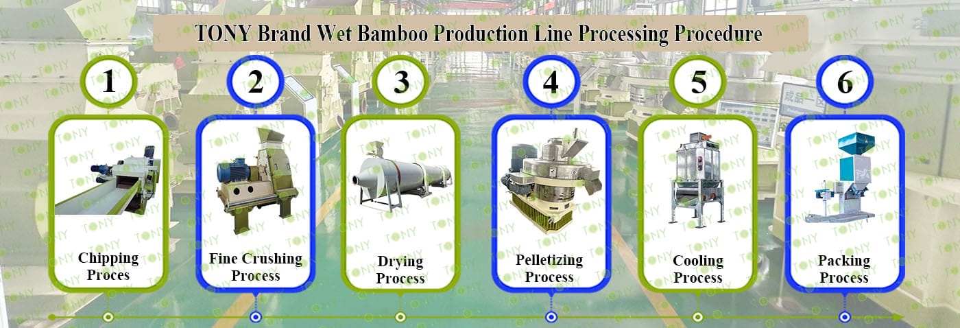 3.TONY Brand 4-5Ton /Hour Wet Bamboo Pellet Line Project Process