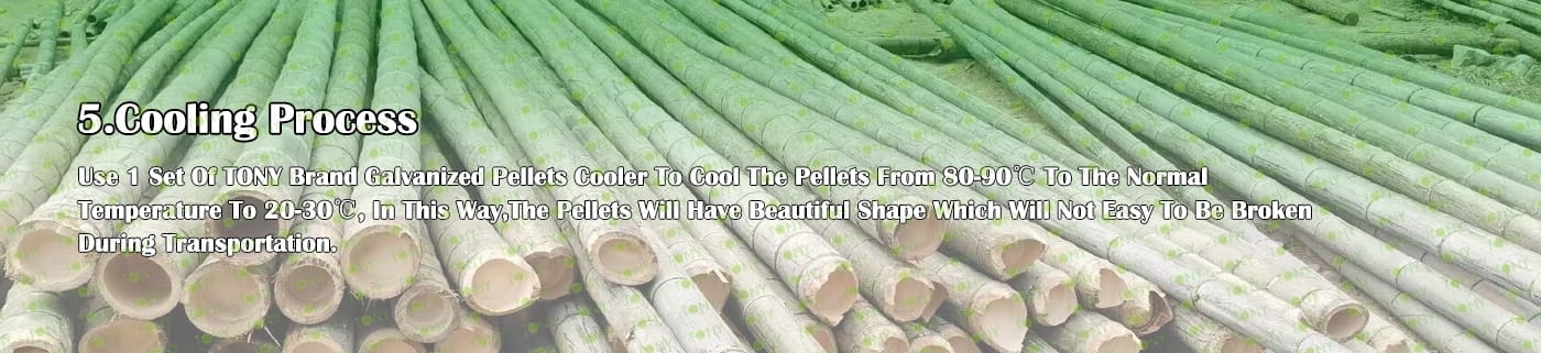 How to use the TONY pellet production line to make pellets from wet bamboo? The process mainly includes the following steps and equipment: 1. Use TONY wood chipper to cut wet bamboo with a diameter of less than 20 cm into bamboo chips 25 - 55 mm in length. 2. Use TONY effective hammer mill to crush the 25-55 mm bamboo chips into 8-14 mm bamboo dust. 3. Use TONY rotary drum dryer to dry the bamboo dust with a 40% moisture content down to a moisture content of 10%-15%. 4. Use TONY vertical ring die pellet machine to produce pellets with a diameter of 6-8 mm. 5. Use TONY galvanized pellets cooler to cool the pellets from 80-90°C to 20-30°C. 6. Use TONY semi - automatic packing machine to pack the pellets into bags, each weighing 15-50 kg. For more detailed information and quotations, you can contact TONY. TONY can provide all the above - mentioned products at highly competitive prices and with excellent quality. |