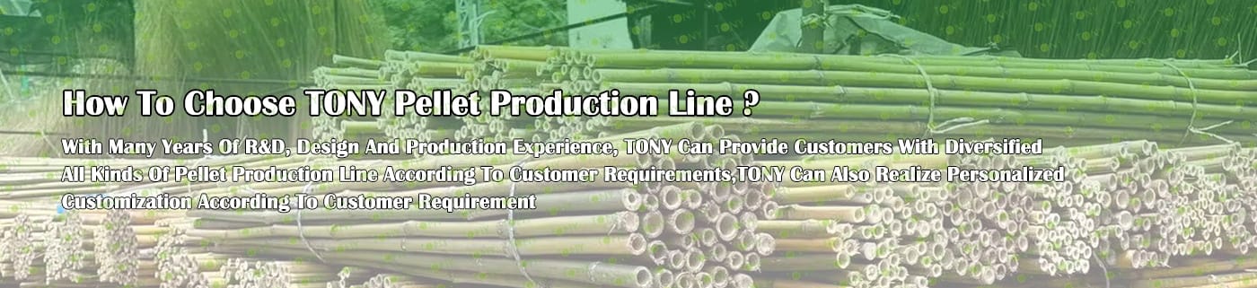 How to use the TONY pellet production line to make pellets from wet bamboo? The process mainly includes the following steps and equipment: 1. Use TONY comprehensive chipper to cut wet bamboo with a diameter of less than 20 cm into bamboo chips 25 - 55 mm in length. 2. Use TONY effective hammer mill to crush the 25-55 mm bamboo chips into 8-14 mm bamboo dust. 3. Use TONY rotary drum dryer to dry the bamboo dust with a 40% moisture content down to a moisture content of 10%-15%. 4. Use TONY vertical ring die pellet machine to produce pellets with a diameter of 6-8 mm. 5. Use TONY galvanized pellets cooler to cool the pellets from 80-90°C to 20-30°C. 6. Use TONY double packing machine to pack the pellets into bags, each weighing 15-50 kg. For more detailed information and quotations, you can contact TONY. TONY can provide all the above - mentioned products at highly competitive prices and with excellent quality. |