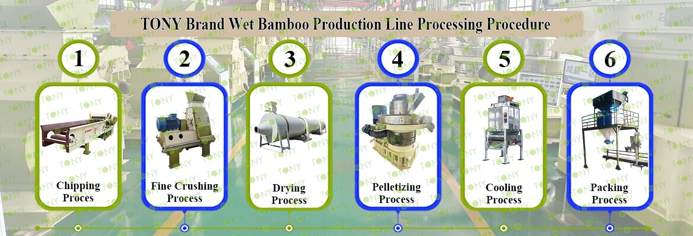 3.TONY Brand 5-6Ton /Hour Wet Bamboo Pellet Line Project Process