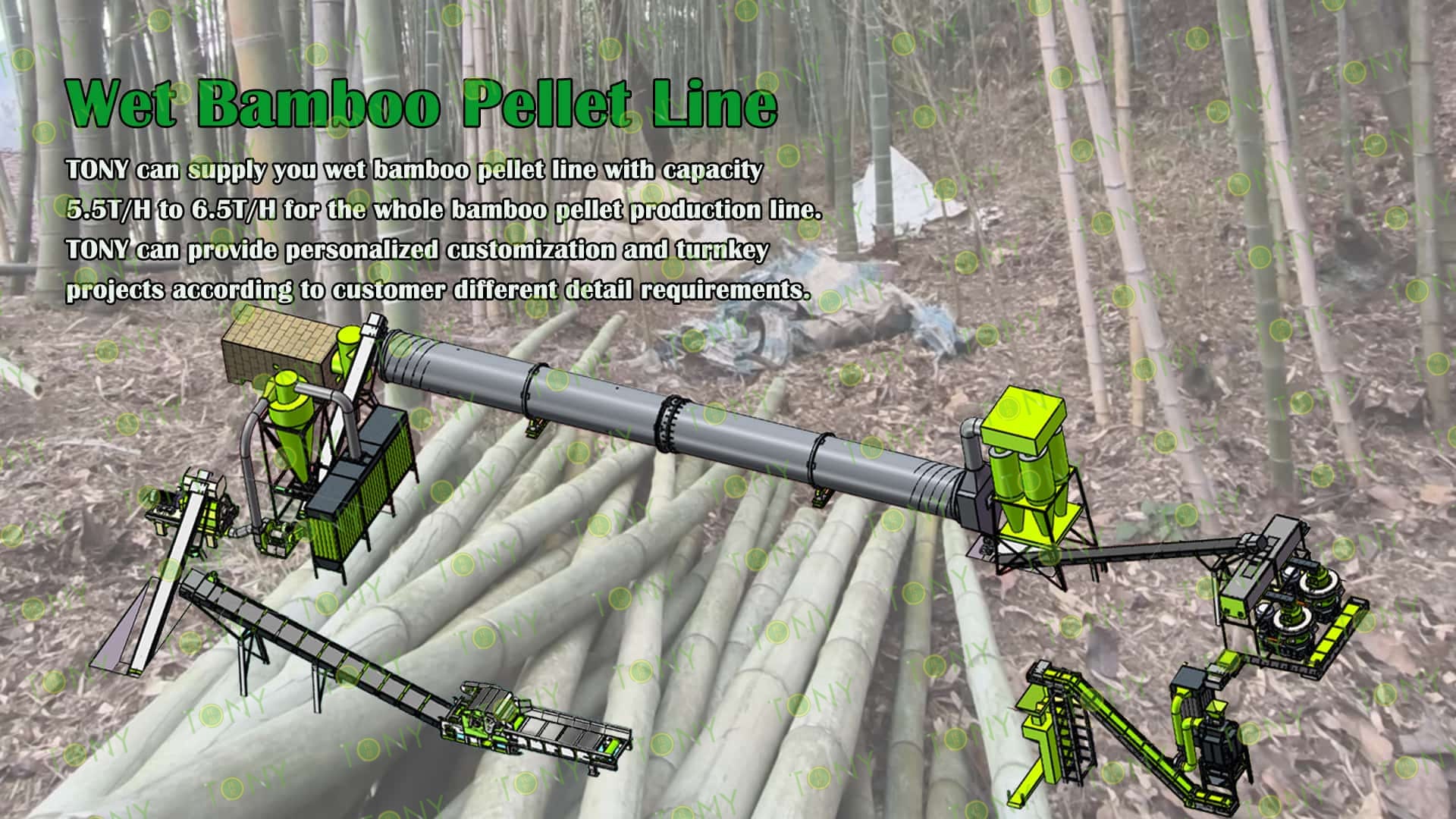 3.TONY Brand 5.5-6.5 Ton /Hour Wet Bamboo Pellet Line Project Process