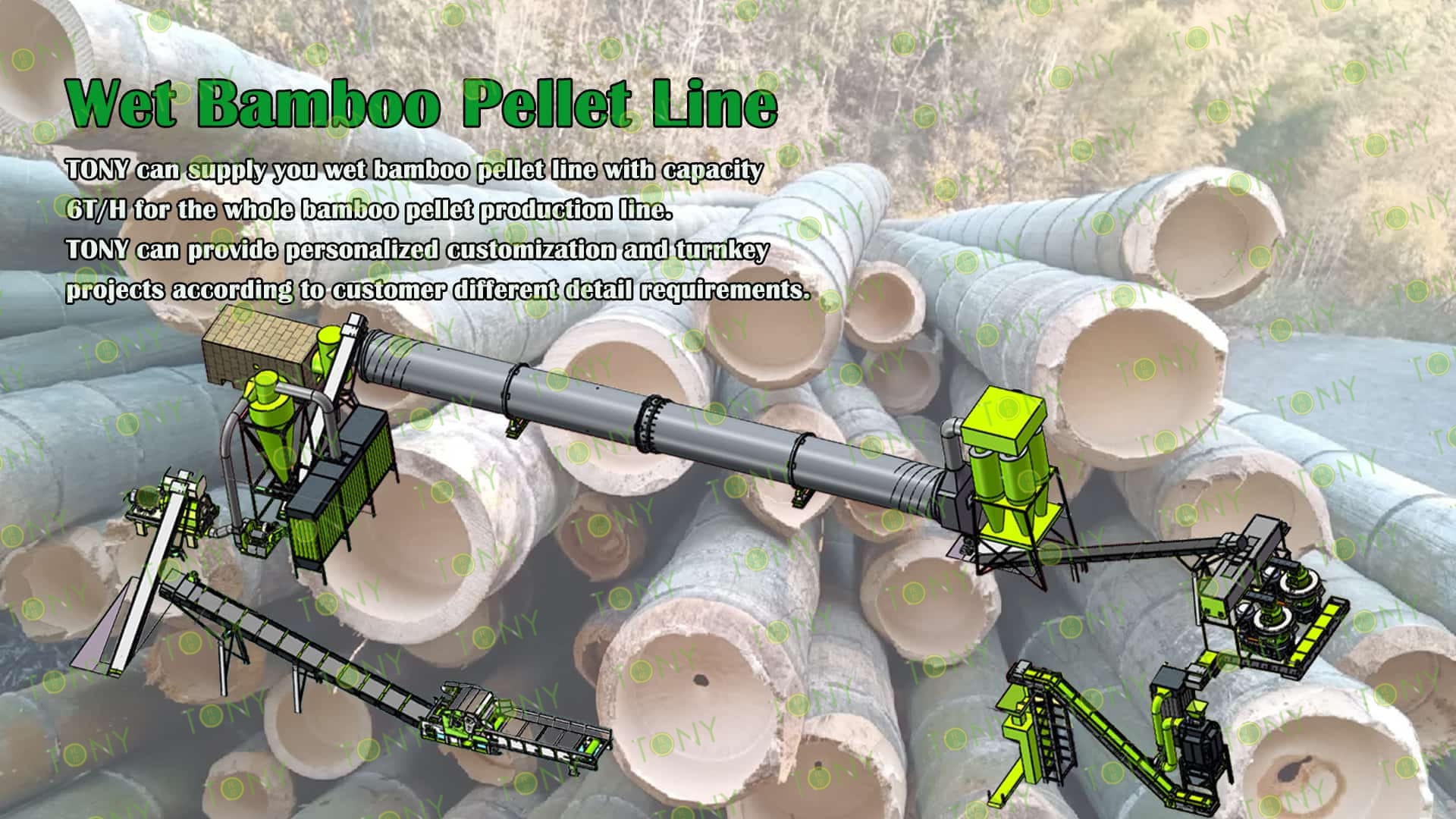 3.TONY Brand 6 Ton /Hour Wet Bamboo Pellet Line Project Process