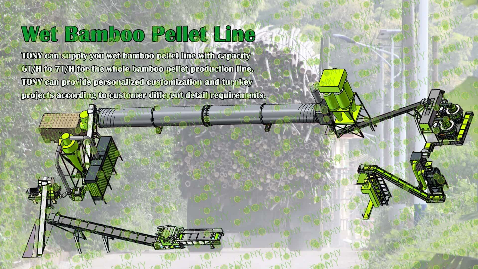 3.TONY Brand 6-7 Ton /Hour Wet Bamboo Pellet Line Project Process