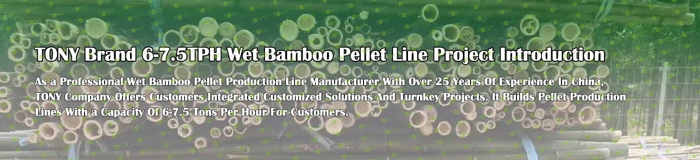 TONY Brand 6-7.5Ton/Hour Wet Bamboo Pellet Manufacturing Plant can take wet bamboo as the main raw material. After pretreatment and processing, it is solidified into high - density bamboo pellet fuel. This fuel is an ideal substitute for coal and oil and plays a role in energy conservation and emission reduction. At present, it has been widely used in regions rich in bamboo resources.