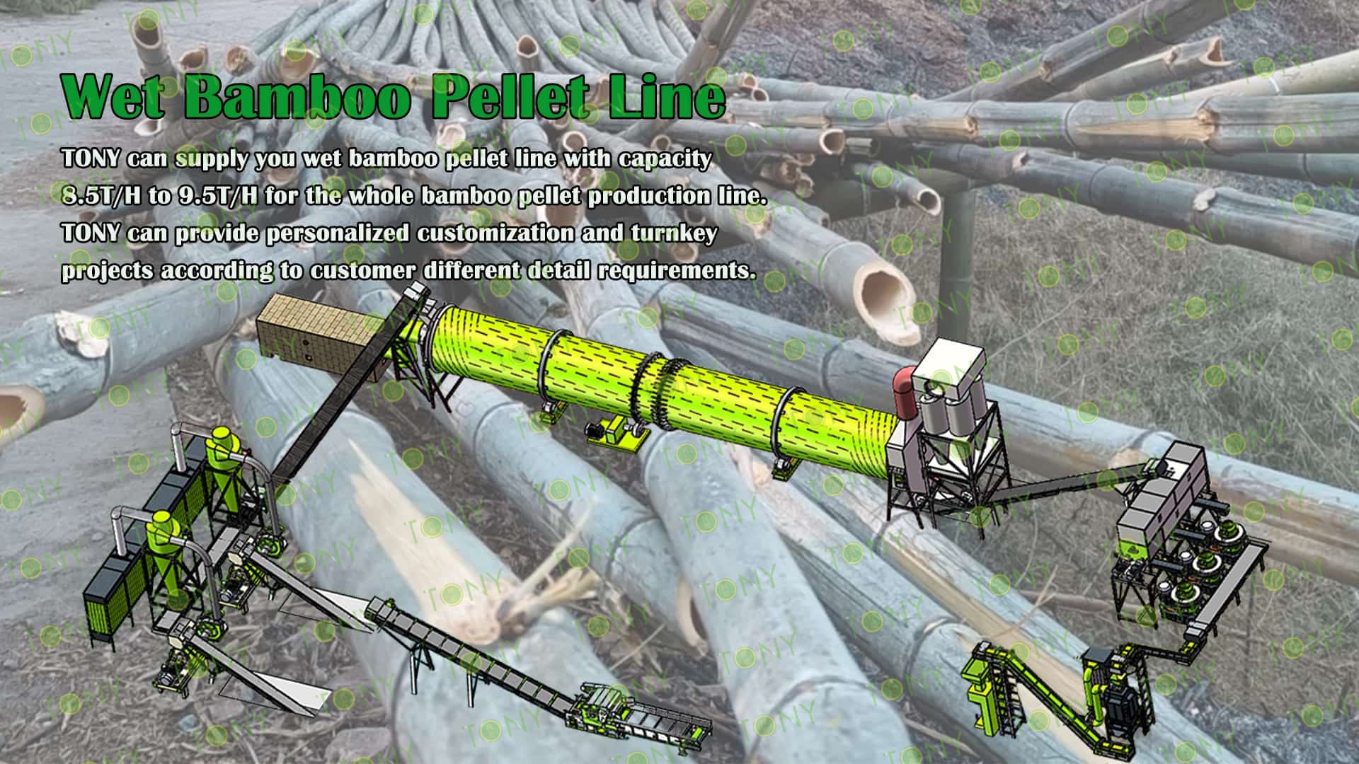 3.TONY Brand 8.5-9.5 Ton /Hour Wet Bamboo Pellet Line Project Process