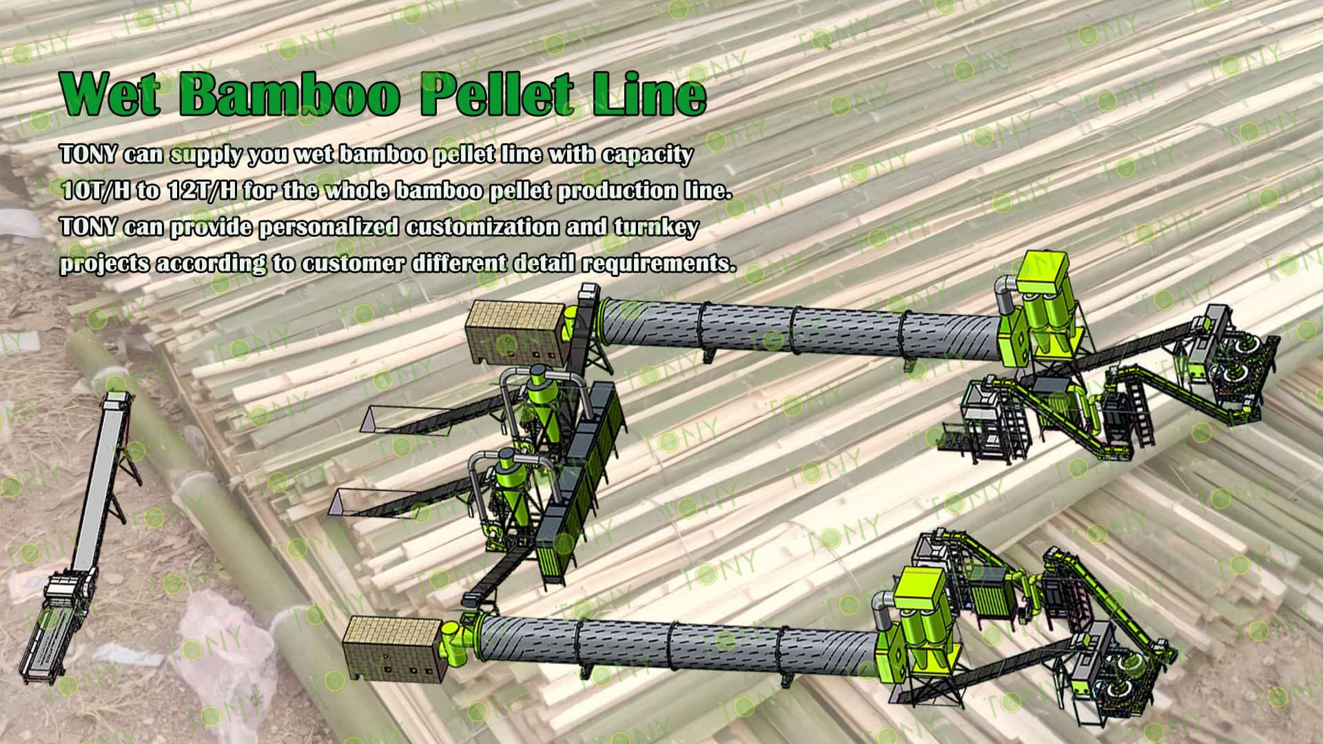 3.TONY Brand 10-12 on /Hour Wet Bamboo Pellet Line Project Process