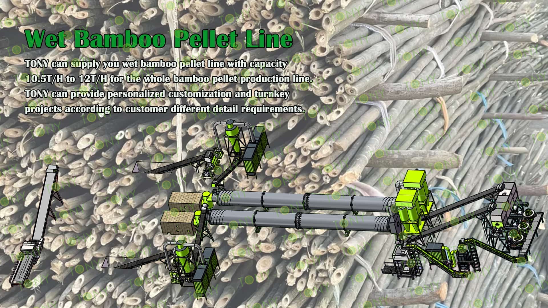 3.TONY Brand 10.5-12 Ton /Hour Wet Bamboo Pellet Line Project Process