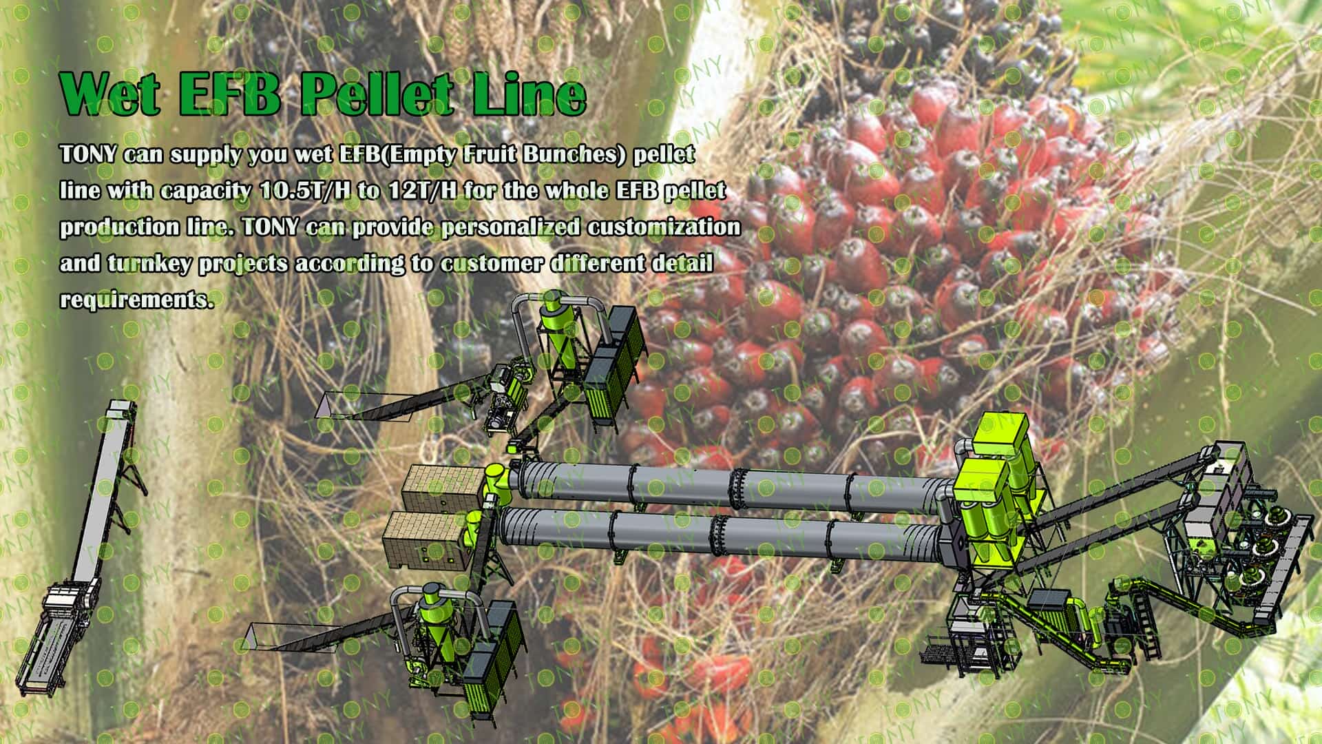 3.TONY Brand 10.5-12Ton /Hour Wet EFB Pellet Line Project Process
