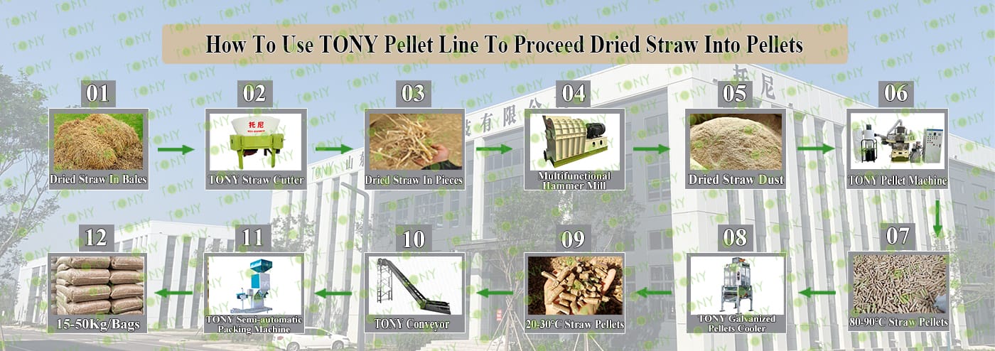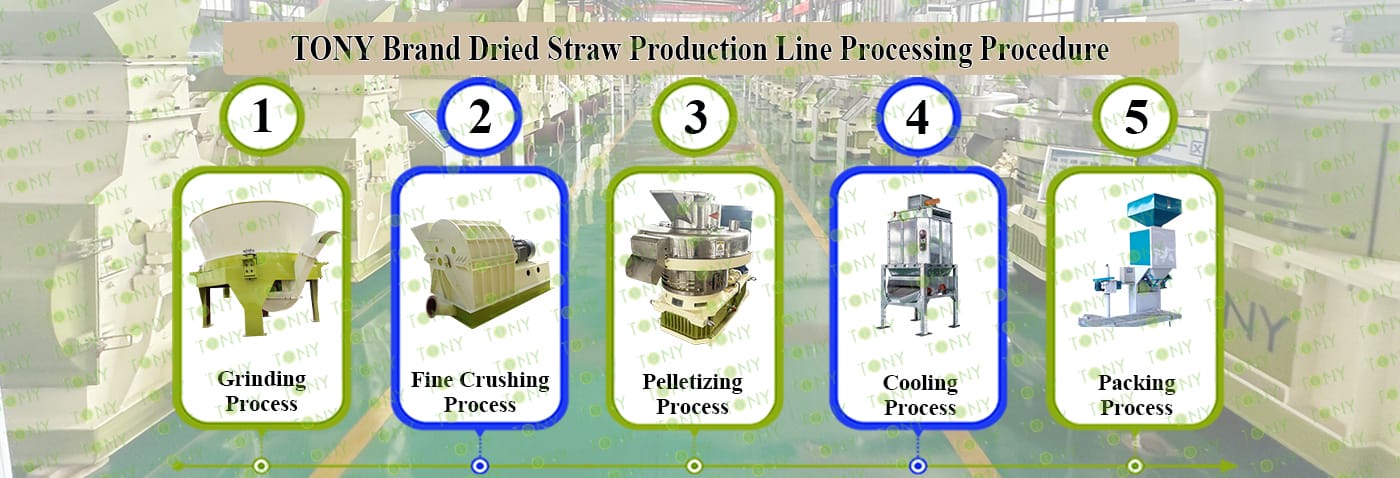 3.TONY Brand 1-1.5Ton /Hour Dried Straw Pellet Line Project Process