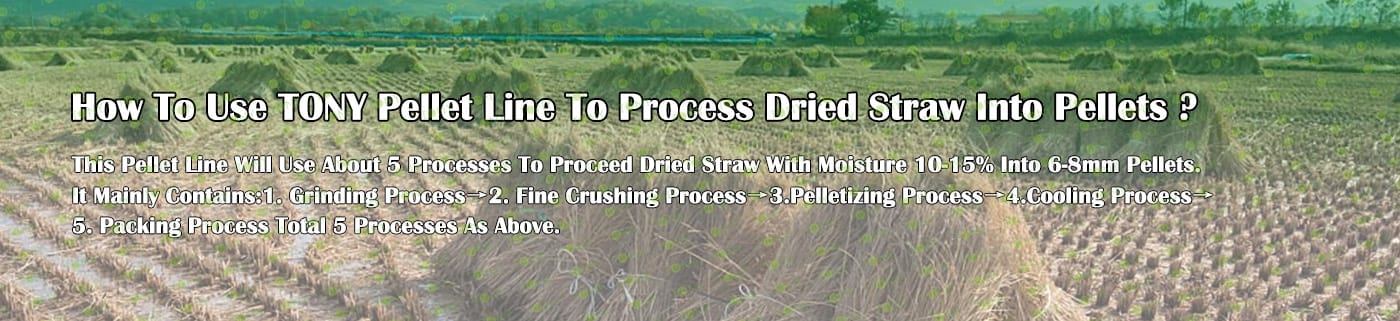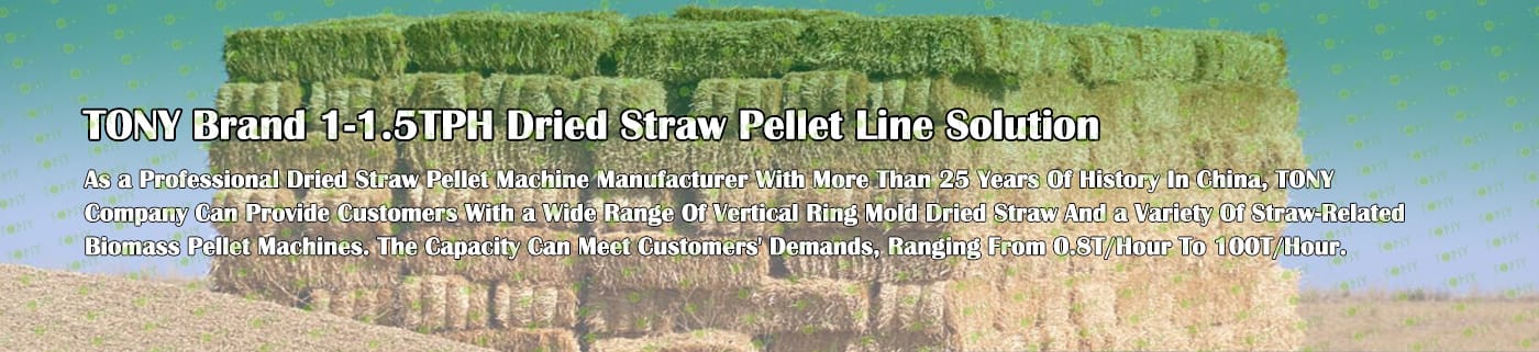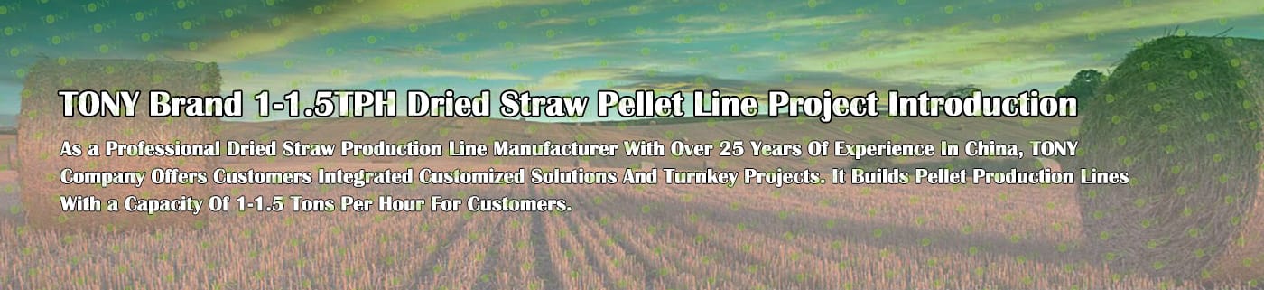 TONY Brand 1-1.5TPH Dried Straw Line can process dried straw and various biomass materials related to agricultural waste into biomass pellets. Straw processing into biomass pellets has a wide range of uses .As fuel: straw pellet fuel can be used as boiler fuel for power plants, industrial boilers, civil heating and other fields. Its calorific value is similar to coal, but the price is lower, and the combustion process produces fewer pollutants, is a more environmentally friendly fuel. As feed: Straw pellets processed by straw pellet machining can be used as feed for livestock. This method can make full use of crop straw, reduce feed costs, and also help solve the problem of straw disposal. These uses can not only effectively use agricultural waste, reduce environmental pollution, but also create economic benefits and promote sustainable agricultural development.