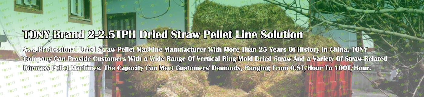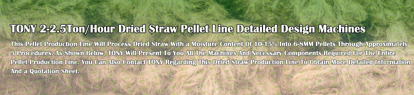 TONY Brand 2-2.5 TPH Dried Straw Line can process dried straw and various biomass materials related to agricultural waste into biomass pellets. Straw processing into biomass pellets has a wide range of uses .As fuel: straw pellet fuel can be used as boiler fuel for power plants, industrial boilers, civil heating and other fields. Its calorific value is similar to coal, but the price is lower, and the combustion process produces fewer pollutants, is a more environmentally friendly fuel. As feed: Straw pellets processed by straw pellet machining can be used as feed for livestock. This method can make full use of crop straw, reduce feed costs, and also help solve the problem of straw disposal. These uses can not only effectively use agricultural waste, reduce environmental pollution, but also create economic benefits and promote sustainable agricultural development.