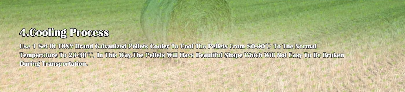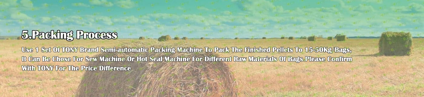 6. Main Equipment: Straw Cutter -TPX2000-55KW, Effective Hammer Mill- TFD65*75-55KW, TONY Pellet Machine-TYJ551-III-132KW, Galvanized Pellets Cooler, Semi-automatic Packing Machine and Belt Conveyors