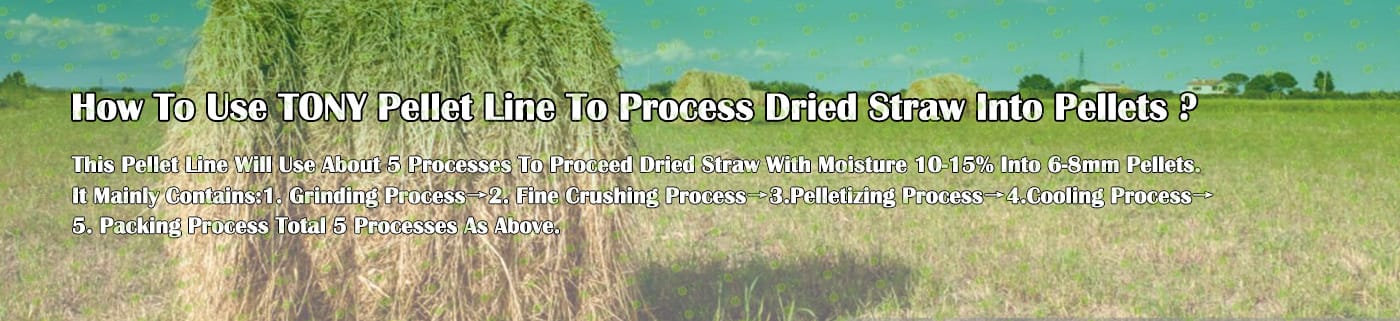 How To Use TONY Pellet Line To Proceed From Dried Straw Into Pellets? It mainly contains the following steps and machines as following: 1.Use TONY straw cutter to grind dried straw bales φ ≤1.8m into 60-70mm dried straw pieces. 2.Use TONY effective hammer mill to crush 60-70mm dried straw pieces into 8-14mm dried straw dust. 3.Use TONY vertical ring die pellet machine to products pellets with φ6-8mm. 4.Use TONY galvanized pellets cooler to cool pellets from 80-90℃ to 20-30℃. 5.Use TONY semi-automatic packing machine to pack the pellets into 15-50kg/bags. You can contact TONY to get for more details information and quotation. TONY can supply you all the products as above with competitive price and excellent quality. |