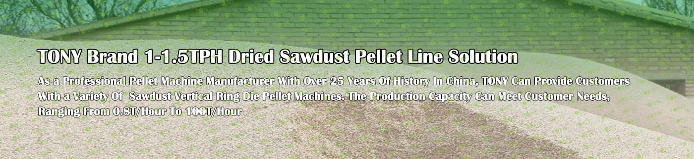 TONY Brand 1-1.5Ton/Hour Dried Sawdust Pellet Manufacturing Plant can take dried sawdust,wood chips, various types of wood - related biomass materials, such as wood pallets ,branches, wood logs, and wood shavings. After pretreatment and processing, dried sawdust is solidified into high - density wood pellet fuel. This fuel is an ideal substitute for coal and oil and plays a role in energy conservation and emission reduction.