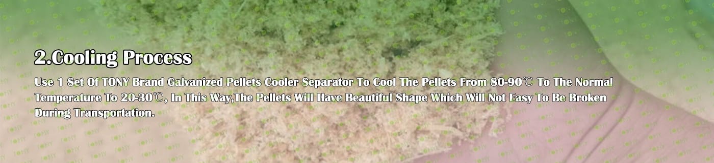 6. Main Equipment: TONY Pellet Machine TYJ551-Ⅲ-90KW, Galvanized Pellets Cooler, Semi-automatic Packing Machine and Belt Conveyors