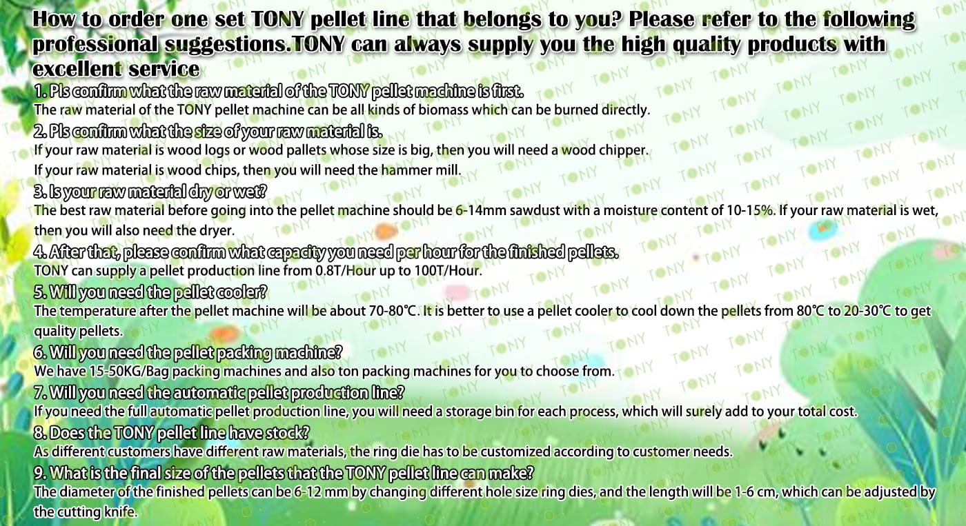 3.TONY Brand 1-1.5Ton /Hour Dried Sawdust Pellet Line Project Process