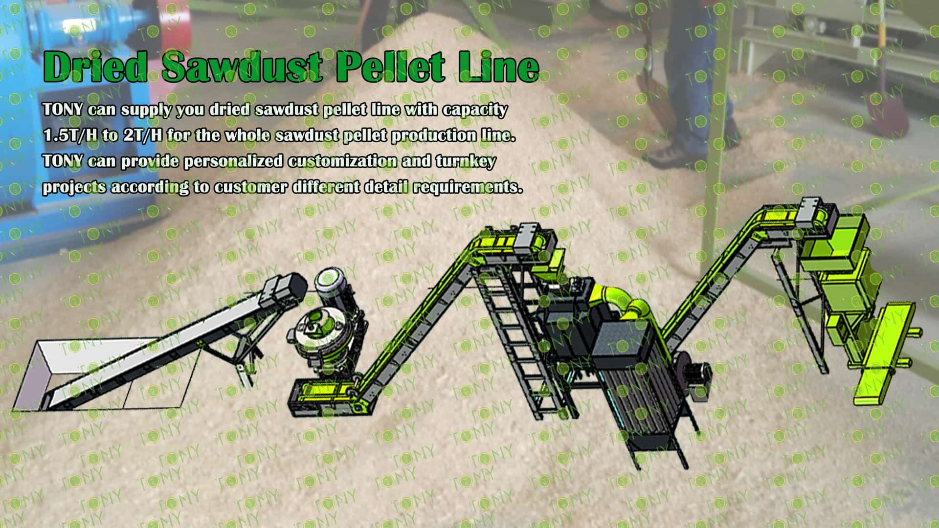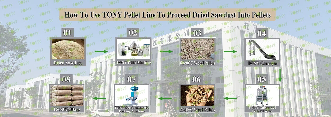 3.TONY Brand 1.5-2Ton /Hour Dried Sawdust Pellet Line Project Process