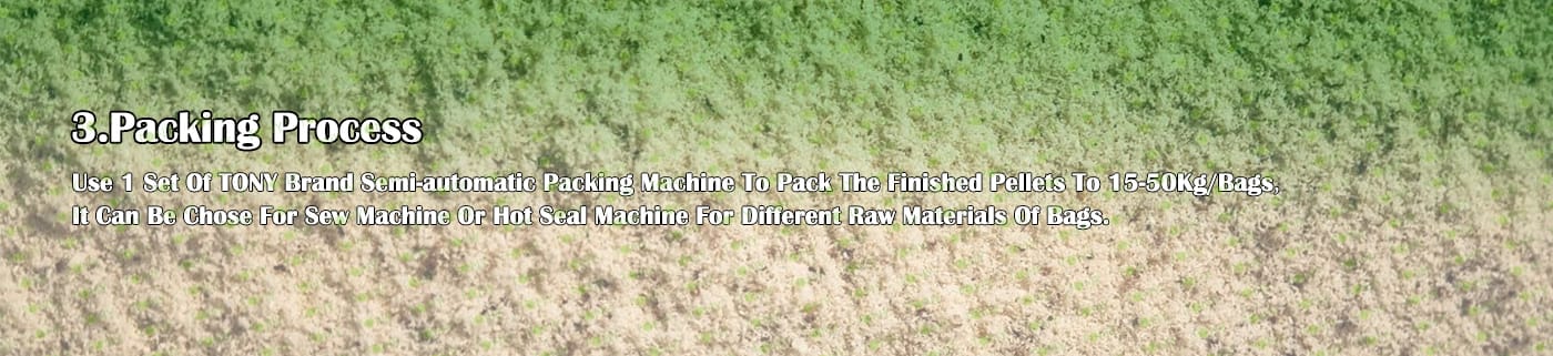 6. Main Equipment: TONY Pellet Machine TYJ551-Ⅲ-110KW, Galvanized Pellets Cooler, Semi-automatic Packing Machine and Belt Conveyors
