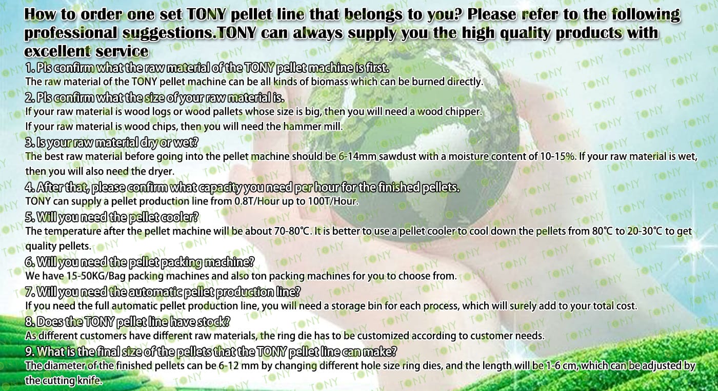 | Next, TONY Will Introduce To You All The Necessary Machinery That Will Be Used For The Whole Pellet Production Line. Some Machines Can Be Custom - Made By Customers According To Different Customers' Detailed Demands. Contact TONY For More Details, Including Quotation And Layout. | |||