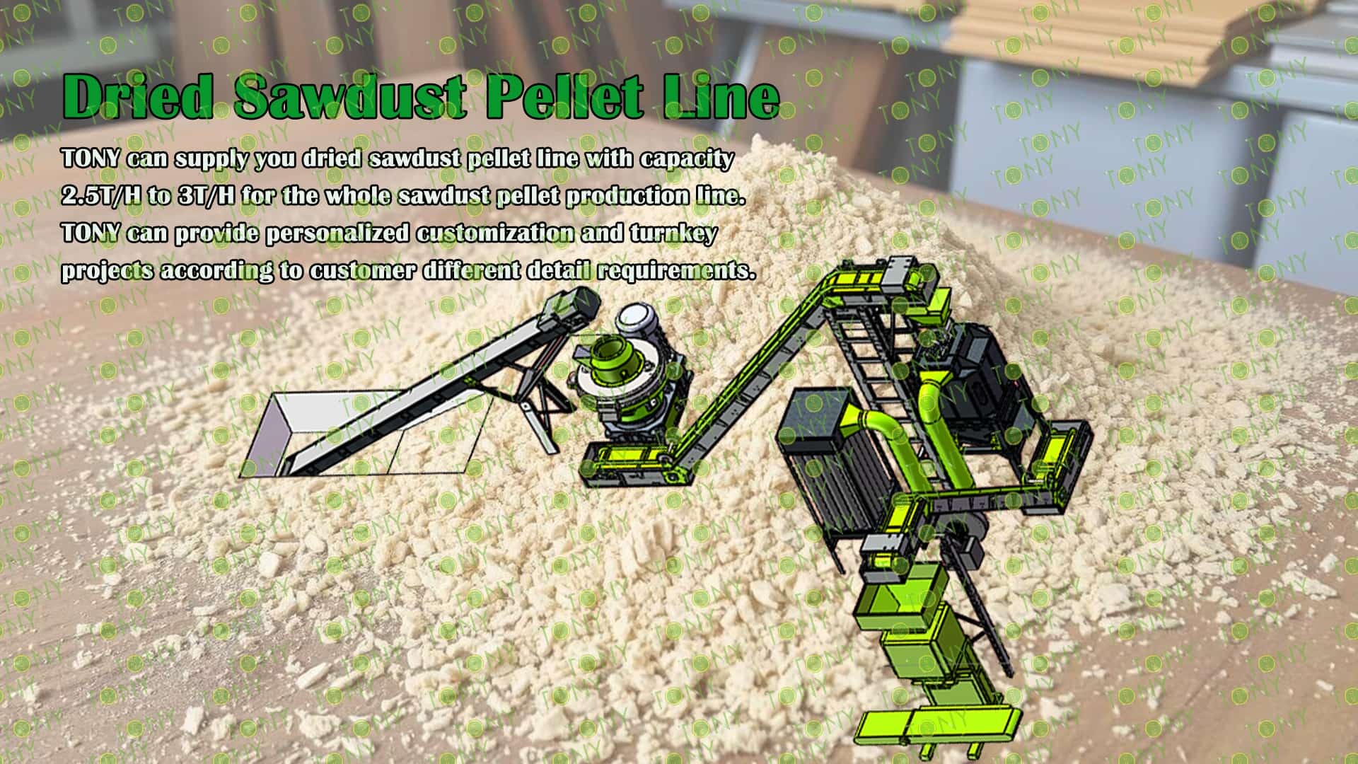 3.TONY Brand 2.5-3Ton /Hour Dried Sawdust Pellet Line Project Process