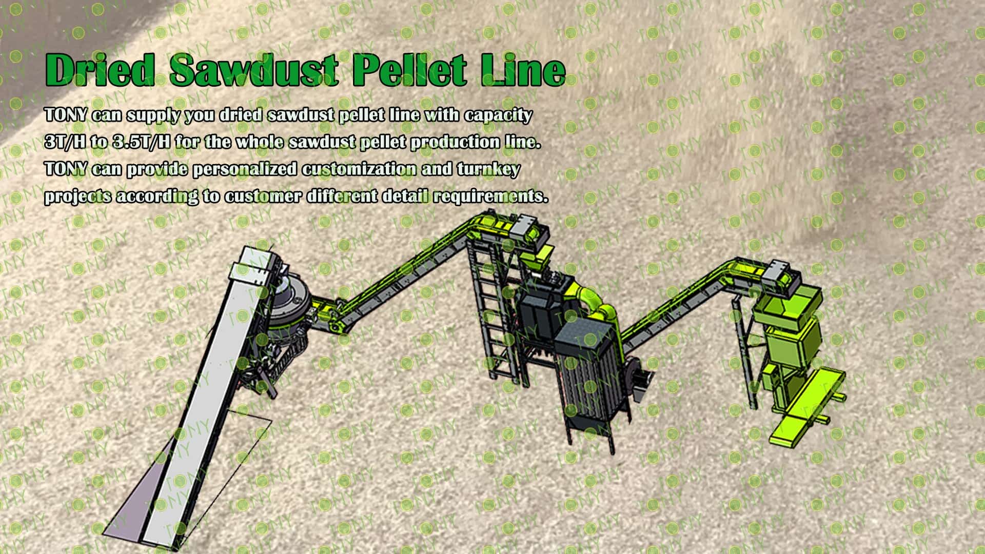3.TONY Brand 3.5-4Ton /Hour Dried Sawdust Pellet Line Project Process