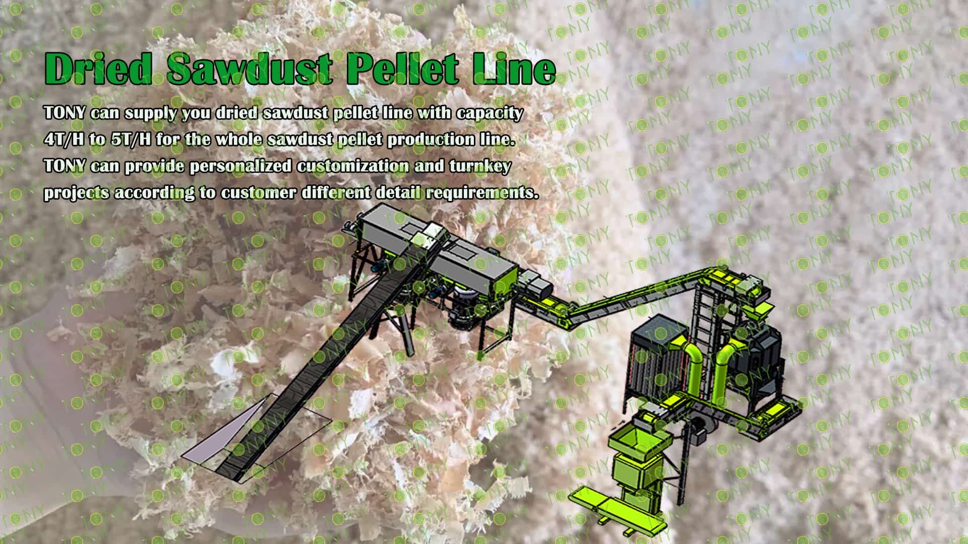 3.TONY Brand 4-5Ton /Hour Dried Sawdust Pellet Line Project Process
