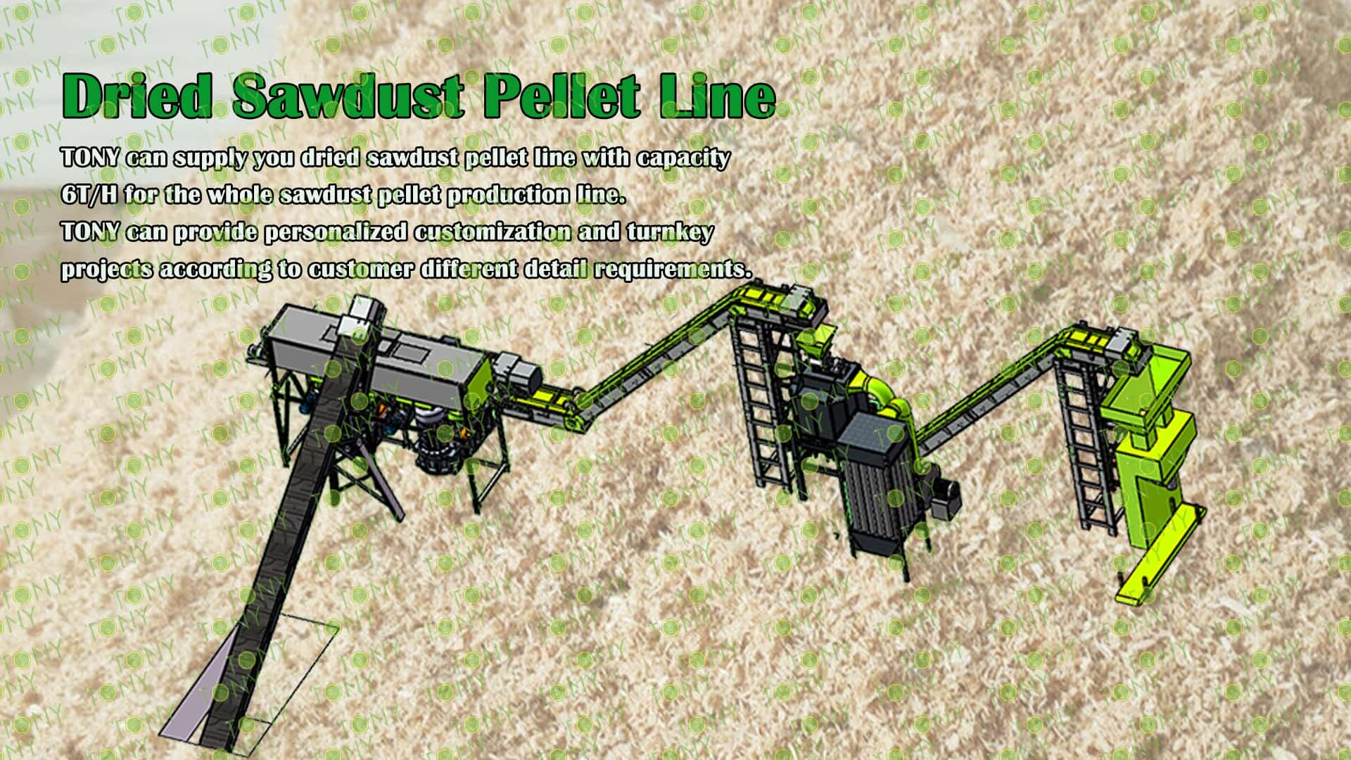 3.TONY Brand 6Ton /Hour Dried Sawdust Pellet Line Project Process